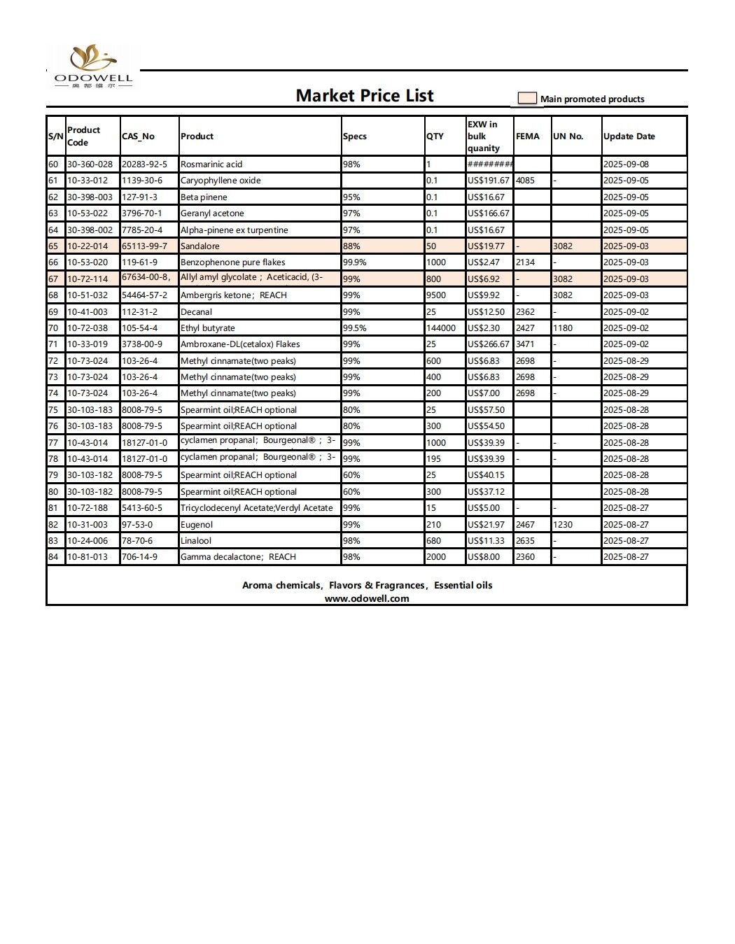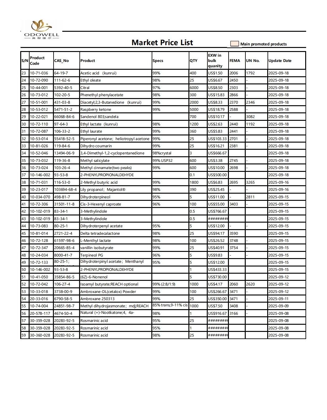 ओडॉवेल-मार्केट किंमत यादी -2025.8.27-2025.09.29