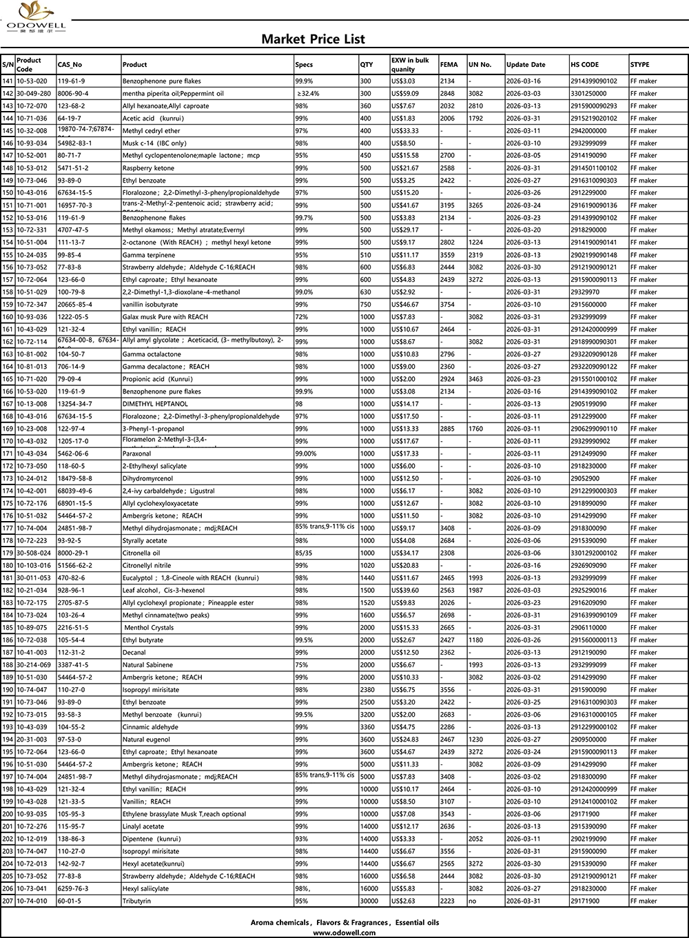 ओडोवेल-बाजार किंमत सूची-२०२६.३.१-२०२६.३.३१